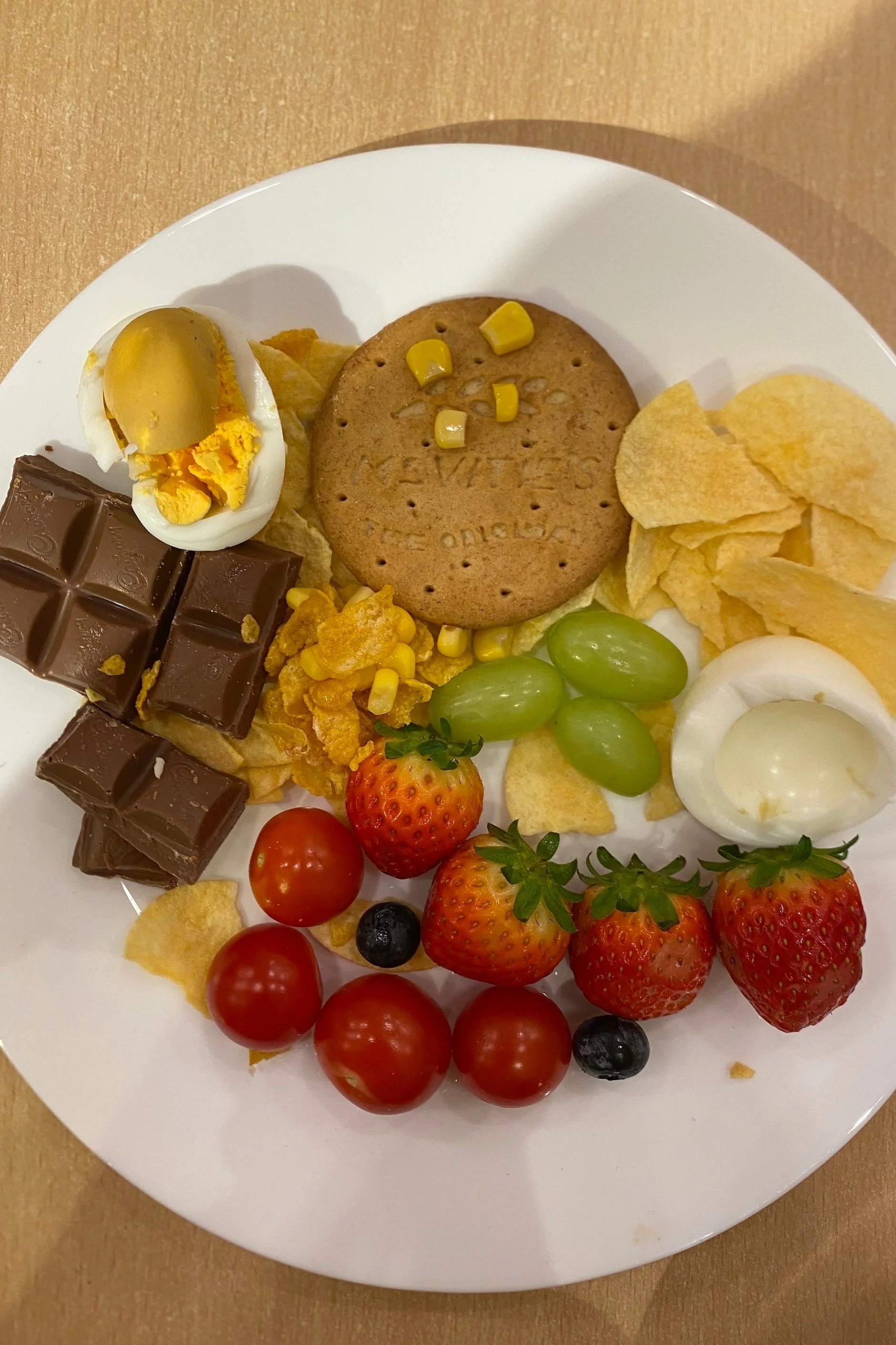 This 2-hour session was separated into two parts. Parents were instructed for the first round to pick food ingredients prepared by the team. We were to turn them into an art piece to increase the appetite of the child. Knowing that Jasmine loved rabbits, I crafted a rabbit face out of lean chicken meat, with carrot sticks as its long ears, and two blueberries as eyes. I added a boiled egg in the background as the sun, and a seaweed rice ball as the playground mat. Jasmine enjoyed every bite. She didn’t normally eat that much, but the fun experience made it exceptional. For the second round, the kids were given the autonomy to do the same, creating a dish for their parents. There was a parent-child role reversal, and the kids were in the position to decide what their parents would eat. Jasmine was truly a fish in the water as she was quite an assertive (bossy) girl. She knew exactly what she wanted. unsurprisingly, Jasmine gravitated towards all the “forbidden” food — plenty of crisps and chocolate. As she had fun crushing the crisps, I asked her if she was turning them into sand. She quickly responded that she was building a sandcastle, and right at that moment, she decided the theme of her art piece to be “sandcastle at the beach.” she also scraped all the egg yolk out from another boiled egg (because she did not like it) and declared it the moon. She took my idea of using the egg as the sun and further developed it in her food art.